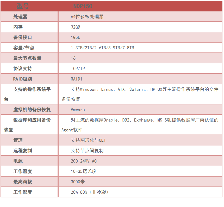 巅峰国际 NCS NDP100(简称NDP100)系列是集备份服务器、备份介质、备份软件于一体的产品,集成的全局客户端重复数据消除技术,使 VMware 环境、远程办公室、企业应用程序、LAN/NAS服务器以及台式机/笔记本电脑的日常完整备份变得更加方便快捷,为关键业务给予全面的数据保护。